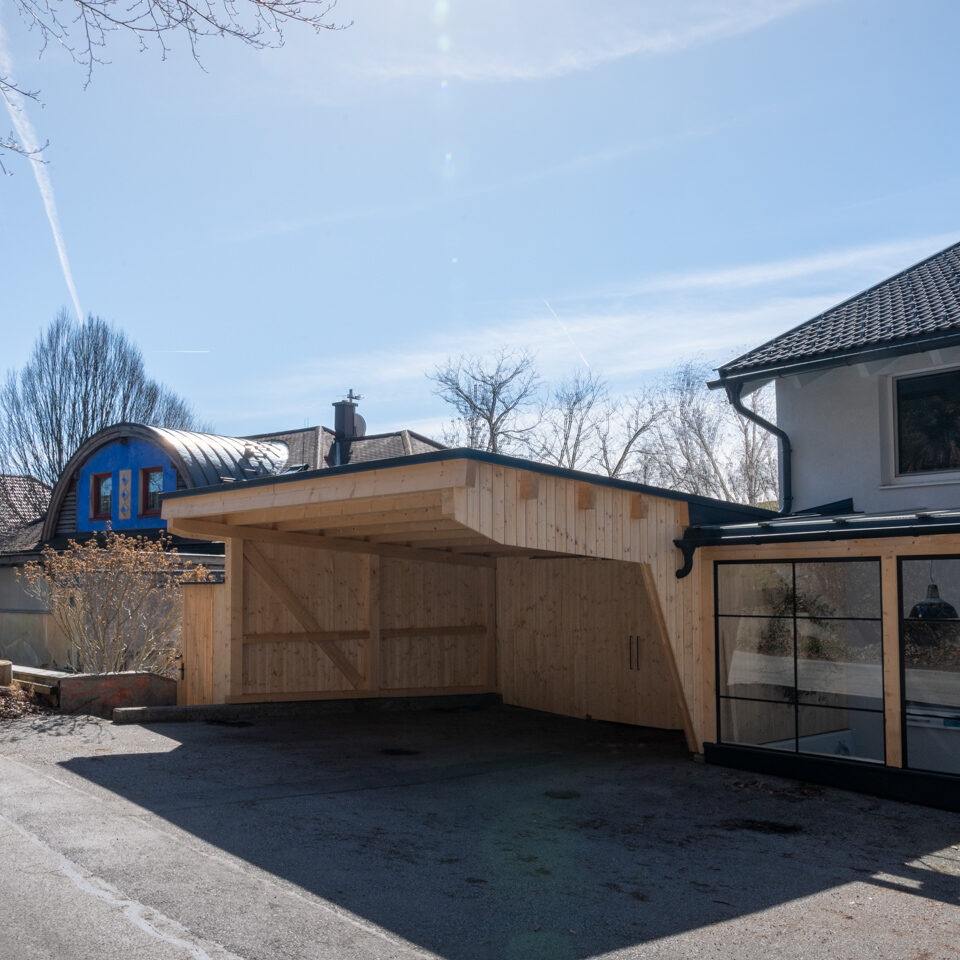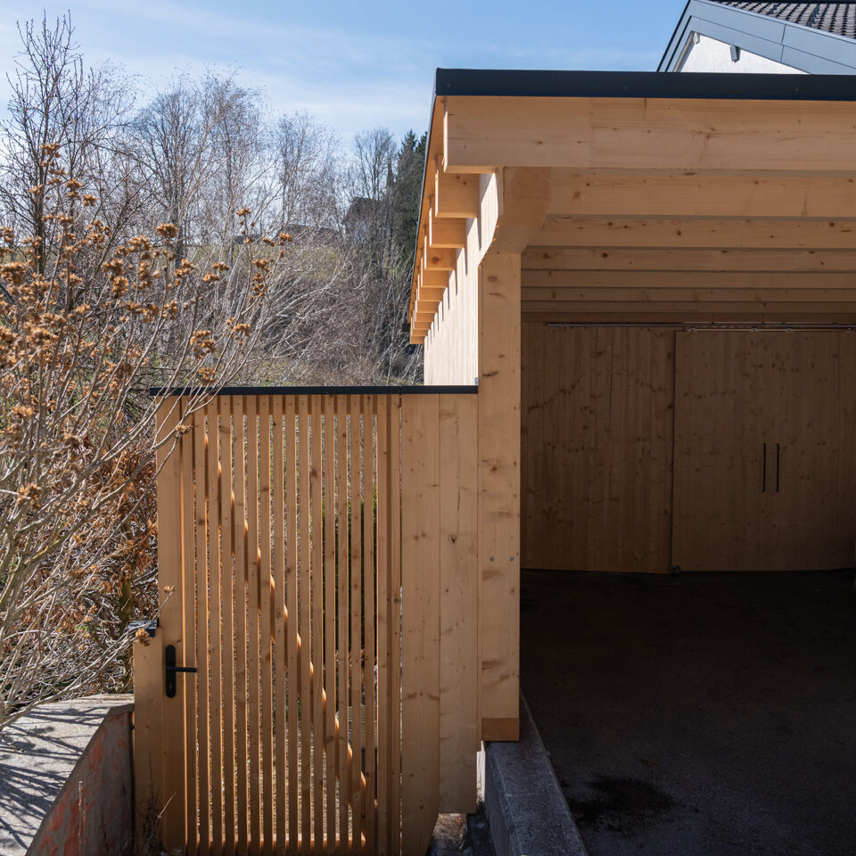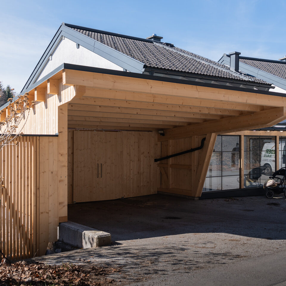 Neues Carport mit Überdachung für den Eingangsbereich Baufertigstellung: 2025 Bauherrschaft: Privat Unsere Leistungen: Carport Planung: Eigenplanung Fotos: © Eder Holzbau / Jakob Eder Project navigation